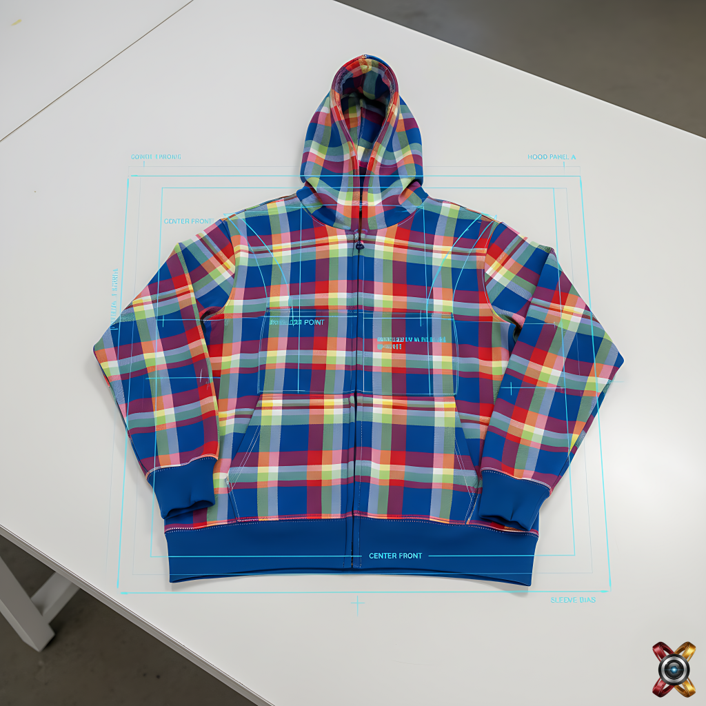 Our design approach is practical and exacting. Madras at FDLV is a system, not a motif: palette families, scale rules, paneling logic, seam strategies, and fit calibrations ensure checks fall cleanly across bodies and move with life.