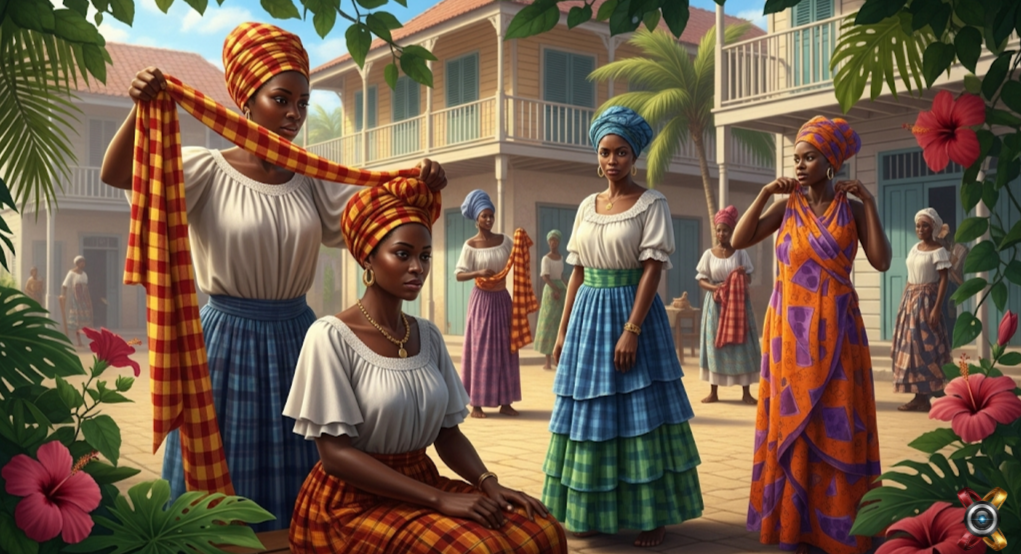 Women across islands such as Dominica, St. Lucia, and Guadeloupe wore the cloth during festivals and ceremonies, often styling it into elaborate headpieces known as têtes en l’air.